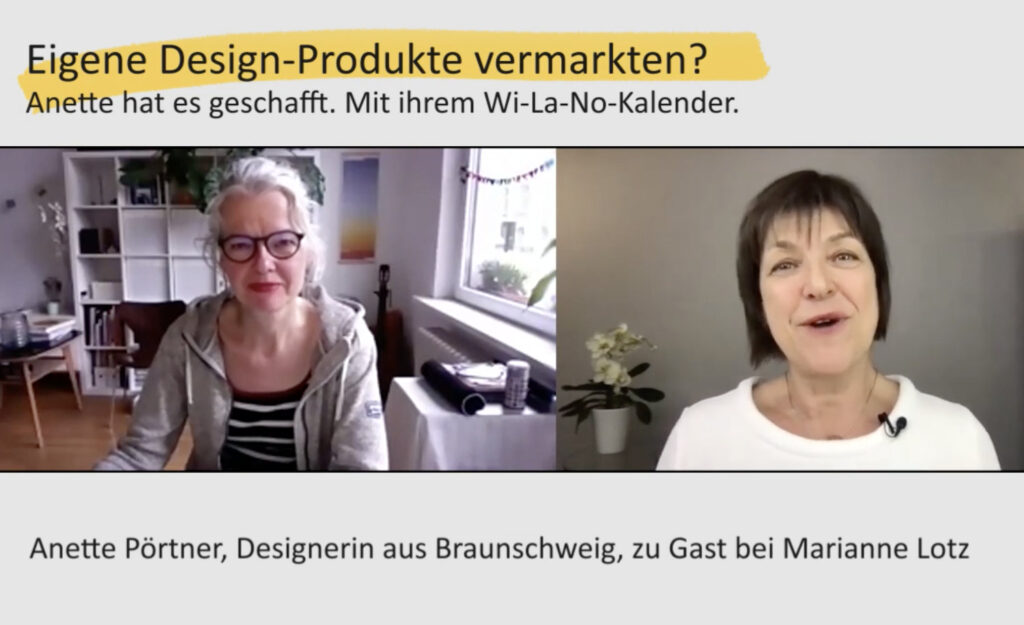 Ich bin selbständige Designerin und entwerfe einzigartige Wandkalender und weitere originelle Papeterie-Produkte unter dem Label „Wi-La-No“ – Das ist eine Kurzform der Frage „Wie lange noch?“.